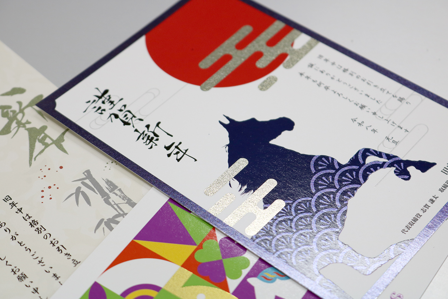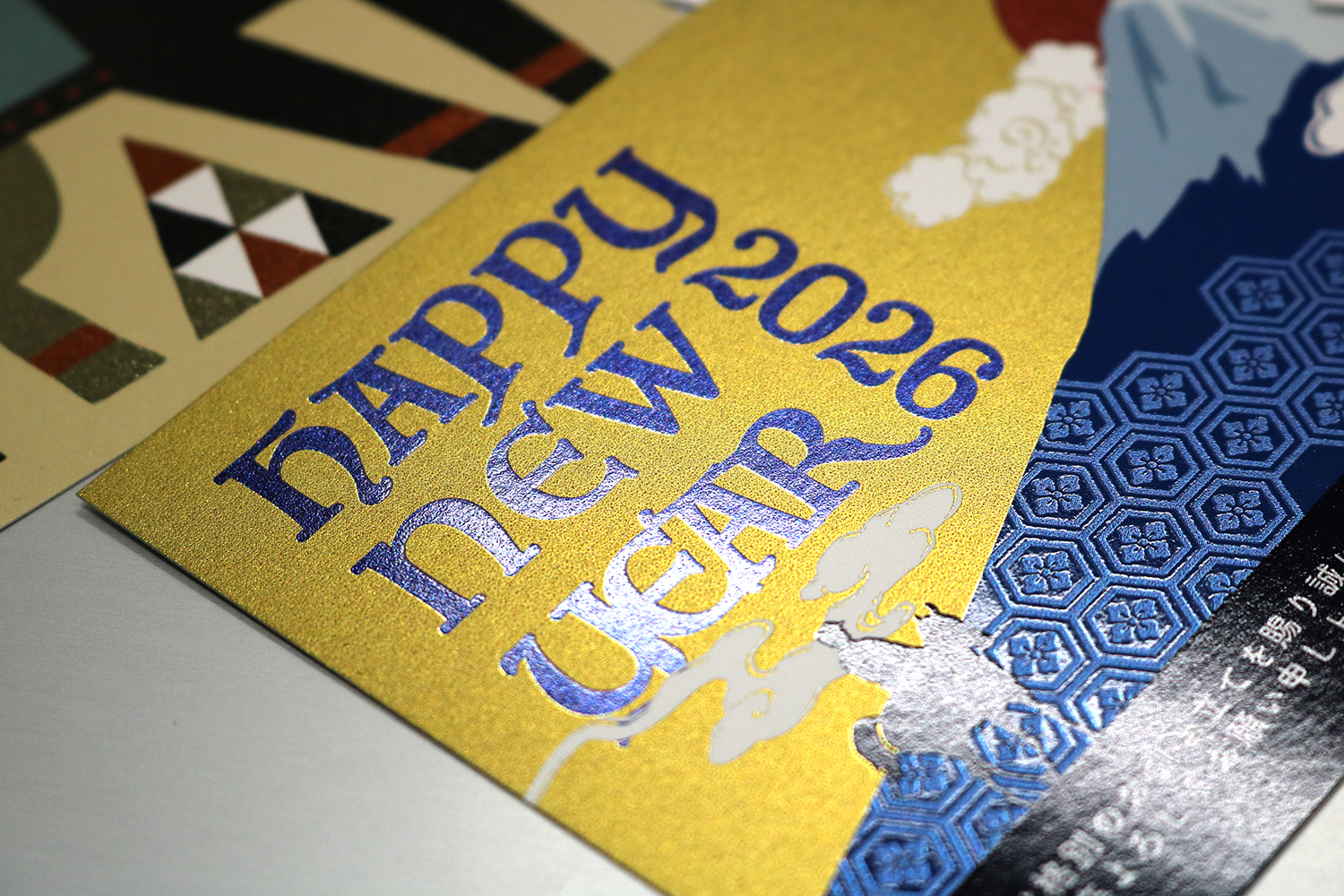 年賀状はコールドフォイル×疑似エンボス加工を施したスペシャルな仕様になっています。